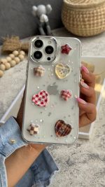 قاب موبایل آیفون ستاره و دکمه قلبی شفاف